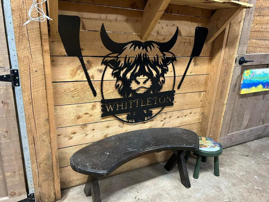 Panneau en métal personnalisé représentant une vache des Highlands