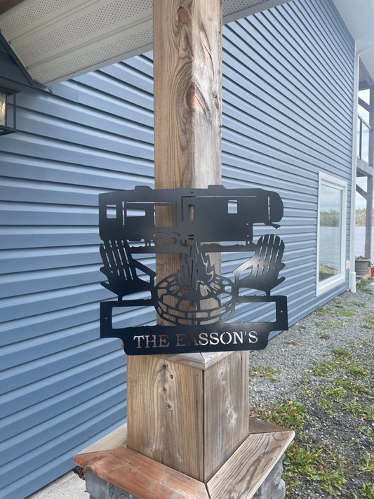Panneau de feu de camp personnalisé en métal pour camping-car à sellette